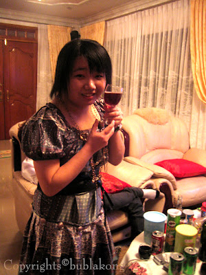her mum really geng anyway. she knows how to make grape wine, apple wine, and her house are full with winesssss. aiseh.